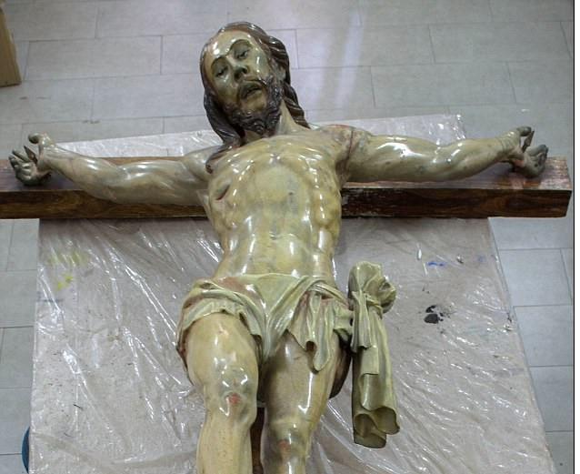 Drveni kip koji je bio na restauraciji inače stoji u crkvi Santa Akueda.