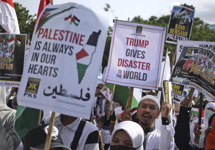 U Džakarti su demonstranti nosili plakate na kojima je pisalo "Ambasado SAD-a, gubi se iz Al Kud-a", "Oslobodite Jerusalim i Palestince" i "Mi smo Palestinci".