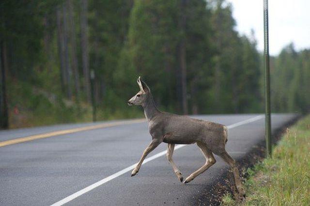 Uplašena četiri jelena su pretrčavajući ulicu prešla preko bezbednosnog zida na auto-putu, ne sluteći da se iza njega nalazi duboka provalija.