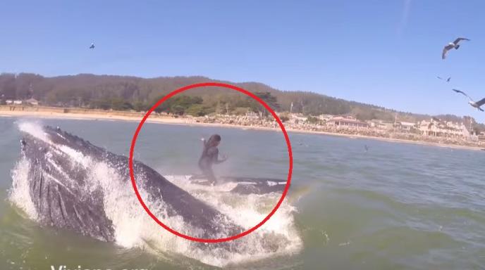 Jedna devojka uzela je svoju dasku i ušla u vodu u zalivu Half Mun u Kaliforniji, kada joj je odjednom iz dubina izleteo - kit!