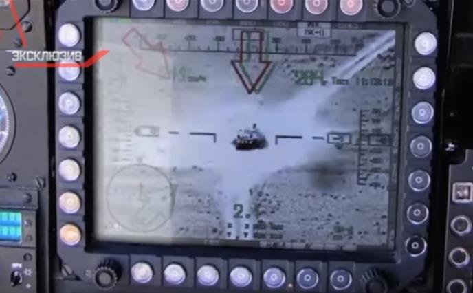 Na ekranu helikoptera Mi-28N "Noćni lovac" se može videti cilj — oklopno vozilo terorista.
