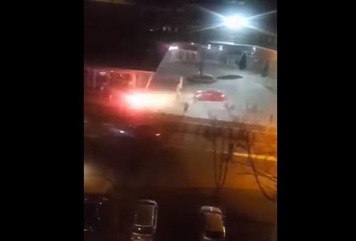 Na snimku koji je neko snimio sa prozora zgrade u blizini, vidi se BMW iz kog neko sa suvozačevog mesta ispaljuje rakete na ljude koji beže, ali ih oni jure kolima i pucaju.