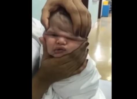 Ova tek rođena beba primljena je u bolnicu zbog infekcije. Na snimku koji je brzo postao viralan, jedna sestra pritiska bebinu glavu sa obe ruke, druga sestra snima, a čuje se i kako se smeju.