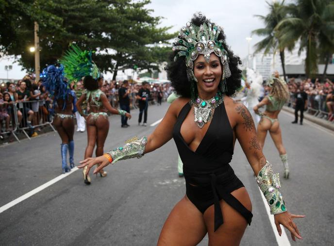 Muzičari i plesači iz najboljih 13 škola sambe u Riju de Žaneiru održali su danas paradu na plaži Kopakabana, u cilju promocije svetski poznatog Karnevala u Riju, zakazanog za početak februara.