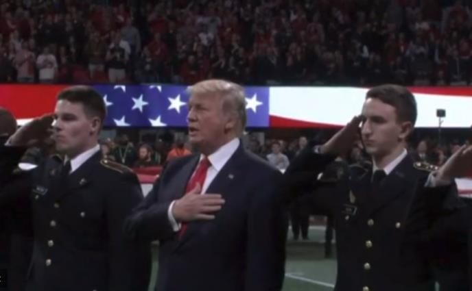 Američki predsednik Donald Tramp izazvao je burne reakcije tokom intoniranja američke himne uoči fudbalske utakmice u Atlanti, jer se na video-snimku vidi kako pokušava da je peva.