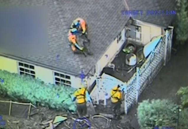 Spasioci su u utorak uz pomoć helikoptera spasli petočlanu porodicu iz okoline San Dijega, koja se popela na krov pošto je njihovu kuću progutalo blato.