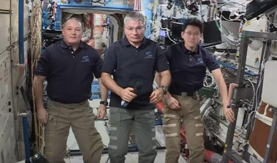 Pojavio se snimak koji prikazuje tri astronauta koji govore u prenosu uživo unutar svemirske stanice.