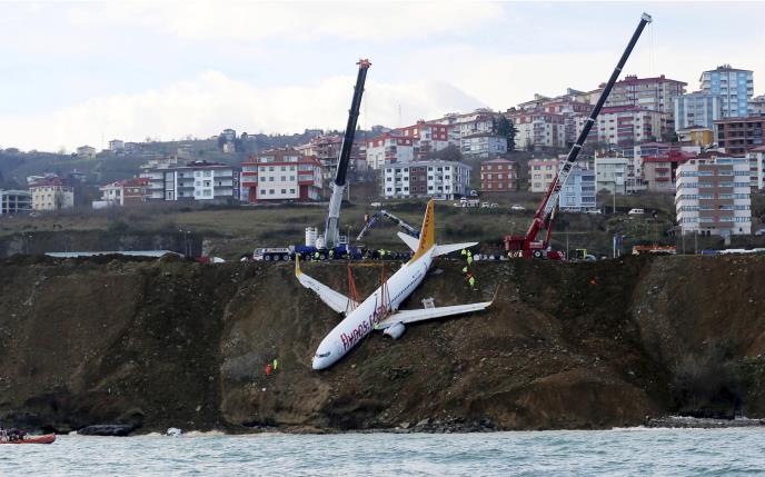 Putnički avion avio-kompanije "Pegasus erlajns" podignut je s litice nakon što je zamalo skliznuo sa zaleđene piste u more u Turskoj.