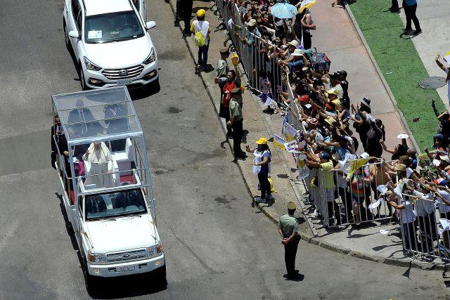 Tokom prolaska ulicama Santjaga de Čilea, u obezbeđenju kolone u kojoj se nalazio i papamobil bili su i policajci na konjima.