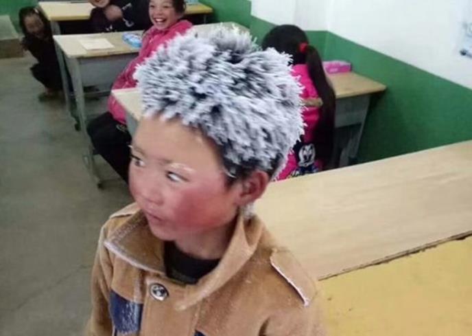 Njegove trepavice i obrve su takođe bile zamrznute. Naime, dečak iz Kine je do škole pešačio 4,5 kilometara na temperaturi od minus 9 stepeni. Učiteljica ga je fotografisala i ta slika se veoma brzo raširila internetom.