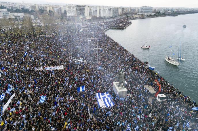 Više od 100.000 Grka okupilo se danas u Solunu, gradu na severu zemlje, na demonstracijama protiv upotrebe reči "Makedonija" u bilo kakvom rešenju spora između Atine i Skoplja zbog imena bivše jugoslovenske republike.
