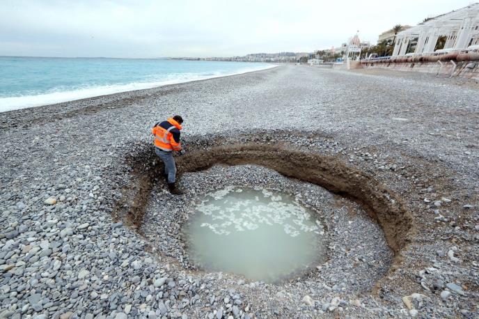Misteriozni krater koji se pojavio na plaži Nici zapanjio je lokalne meštane.