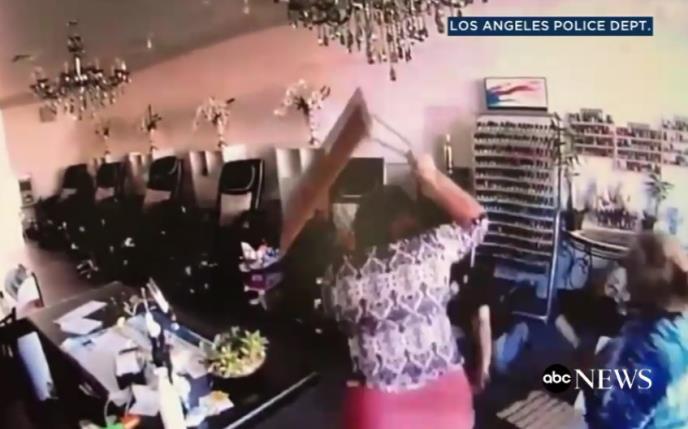 Sigurnosne kamere jednog salona za manikir u Los Anđelesu zabeležile su neverovatnu scenu u kojoj muškarac napada i udara ženu, a onda jedva izvlači živu glavu.