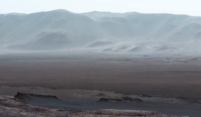 Panorama je sastavljena od fotografija planinskog vrha Veri Rubin na krateru Gejla, navodi se u opisu snimka na Jutjubu.