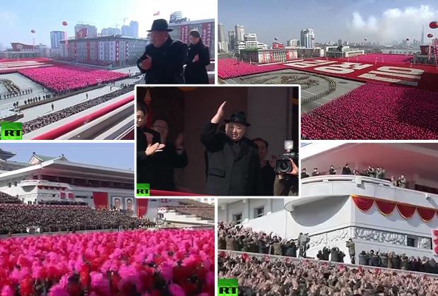 Na trgu Kim Il Sunga paradiralo je 10.000 vojnika. Neimenovani južnokorejski zvaničnik saopštio je da je, pred toga, u defileu učetvovalo i desetine hiljada ljudi.