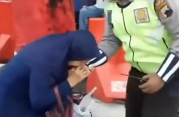 Jedan indonežanski policajac naišao je na neočekivani otpor žene na motociklu, koju je zaustavio jer nije nosila kacigu na glavi.