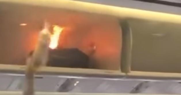 Putnici u kineskom avionu su užasnuti gledali kao se požar širi iz pregrade za ručni prtljag unutar kabine.