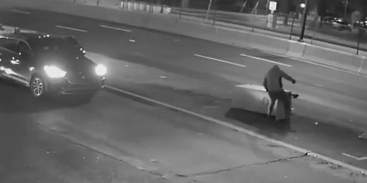 Na jednom od snimaka se vidi muškarac koji prevrće postolje i s ogromnim besom, šutirajući izvaljuje kameru koja je postavljena pored puta.