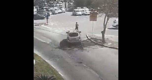 Video snimak objavljen na društvenim mrežama prikazuje terenac koji skreće na parkiralište velikom brzinom i naleće na pešaka. Na drugom snimku se vidi kako se vozilo penje na trotoar.