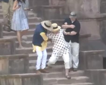 Ovog puta Klintonova se, silazeći niz stepenice u Indiji, dva puta okliznula, ali su je zadržali telohranitelji koji su je s obe strane čvrsto držali za ruke.