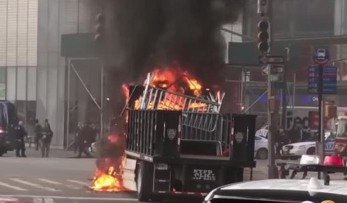 (VIDEO) DRAMATIČAN SNIMAK! POLICIJSKI KAMION PROGUTALA VATRA: Gust, crni dim u središtu Njujorka!
