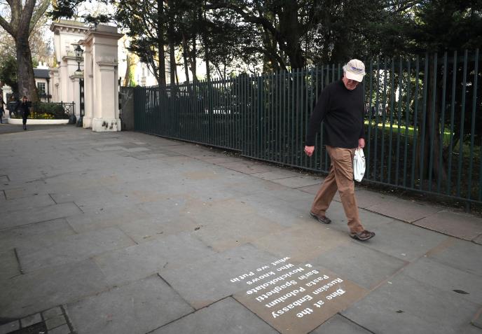 Protivnici ruskog predsednika Vladimira Putina su grafitima, ispisanim na ulici u blizini ruske ambasade u Londonu, ironično kritikovali Rusiju povodom napada nervnim agensom na bivšeg ruskog dvostrukog agenta, a jedan od grafita je glasio: "Večerajte u ruskoj ambasadi - na meniju pasta s polonijumom".