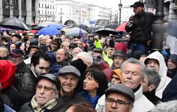 Demonstranti su izašli na ulice Madrida uprkos kiši i hladnom vremenu, a neki od njih su nosili baner na kojem je pisalo "zaštita penzija je ustav". Penzioneri su protestovali i na ulicama Barselone i drugih većih gradova.