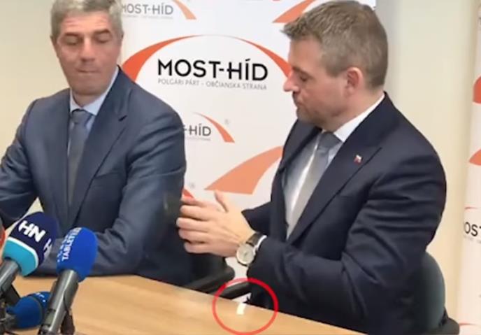 Iako sa snimka nije moguće najjasnije zaključiti o čemu se radi, društvene mreže bruje o kontroverznom snimku na kojem se vidi kako sumnjiv paketić ispada iz sakoa novog premijera Slovačke i to na konferenciji za medije.