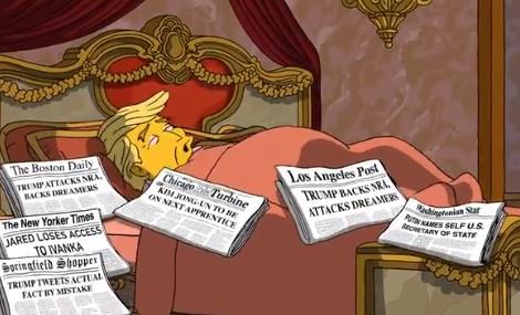 Animirani Tramp je je u jednom trenutku nazvao i ruskog predsednika Vladimira Putina kome je rekao: "Ostavi ovu divnu zemlju na miru!".
