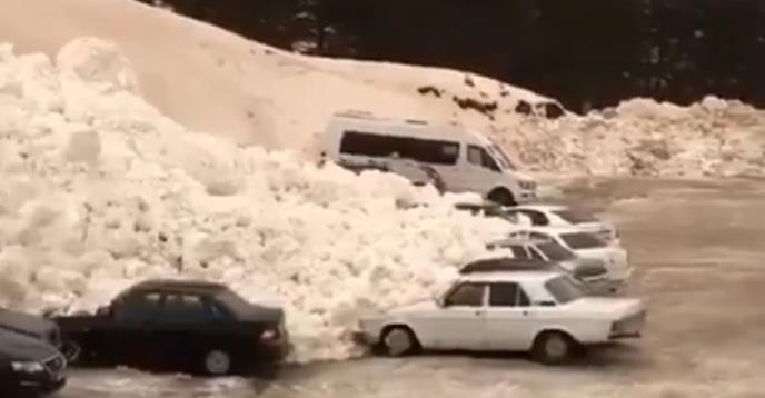 "Sever veder Jurop" objavio je video snimak na Tviteru uz poruku: "Ovo je novi pogled na lavinu s planine Elbrus u jugozapadnoj Rusiji. Dogodilo se juče, a sneg je poprimio nijansu narandžaste boje od prašine iz Sahare."