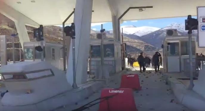 Tokom protesta sukobili su se demonstranti i policija, a zapaljena je i naplatna rampa.