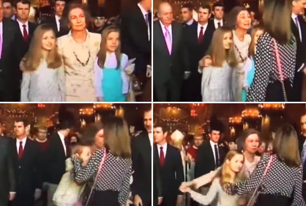 Odreagovala je i mala Leonora (12), koja je popreko pogledala majku i odgurnula i njenu i bakinu ruku. Situacija je uznemirila i španskog kralja Felipea, koji je pokušao da ih smiri.