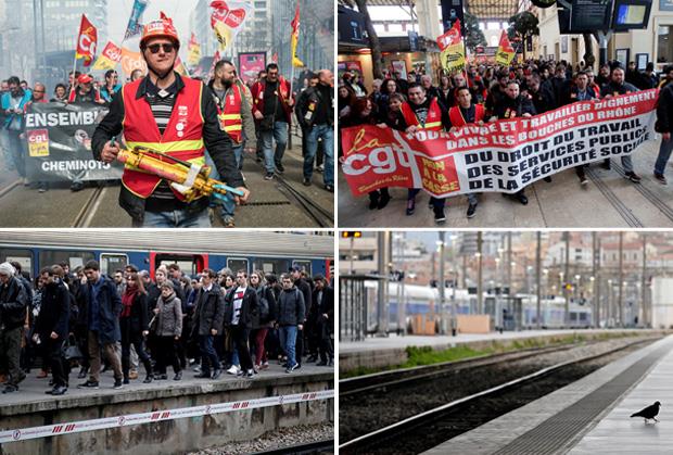 Francuski železničari protestuju zbog planova vlade da im ukine specijalan status koji su decenijama uživali, a koji im garantuje doživotno zaposlenje i druge povlastice, čime je održana slika o francuskoj železnici kao bitnom stubu infrastrukture i javnih službi te zemlje.