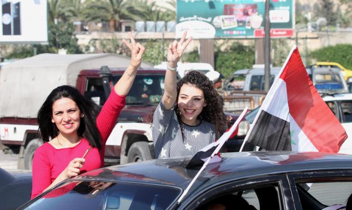 Stotine Sirijaca protestuju danas na trgu Omajad u Damasku, mašući sirijskim, ruskim i iranskim zastavama i transparentima sa simbolima pobede, a u znak podrške predsedniku Bašaru al-Asadu i prkosa noćas izvedenim napadima SAD, Britanije i Francuske na tu zemlju.
