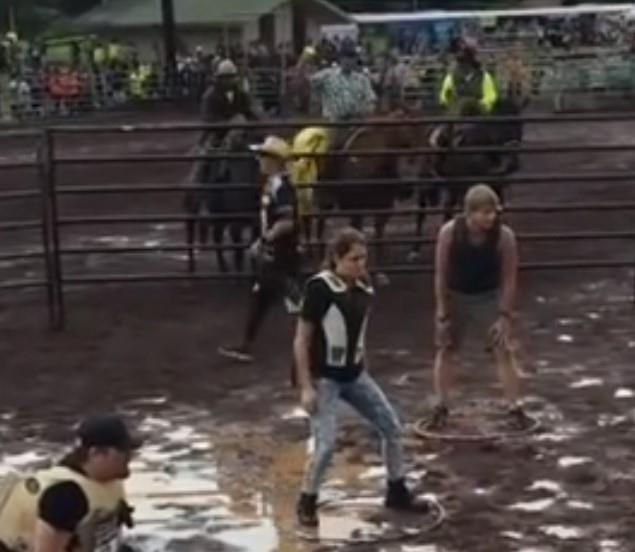 (VIDEO) BIK NALEĆE NA DEVOJKU, A ONA NE SME DA SE POMERI IZ KRUGA! Suluda igra na američkom rodeu!