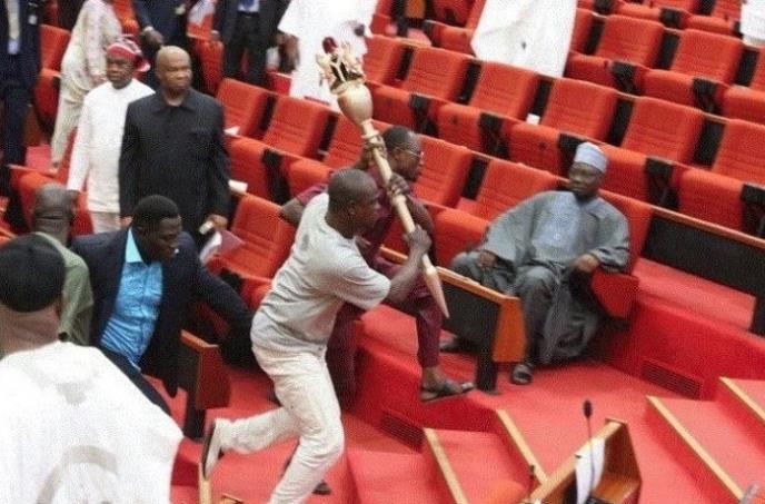 Najmanje tri osobe uletele su juče na sednicu Gornjeg doma nigerijskog parlamenta i ukrale buzdovan, ceremonijalni predmet Senata, bez koga ne mogu da se donose odluke u toj instituciji.