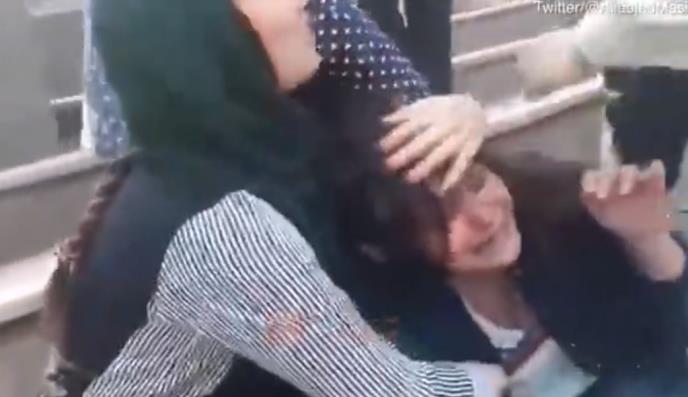 Agresivne napadačice, za koje se veruje da su pripadnice verske policije islamske teokratije, postaju sve nasilnije prema njihovoj preplašeni žrtvi.