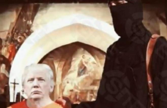 Na drugom snimku Tramp u narandžastoj zatvoreničkoj uniformi u koju Islamska država oblači svoje žrtve pred egzekuciju.
