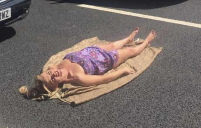 Sudeći prema objavama na društvenim mrežama, mnogi su se poveli za njenim postupkom pa su prostrli odeću ili peškire po auto-putu i legli da uživaju u suncu.