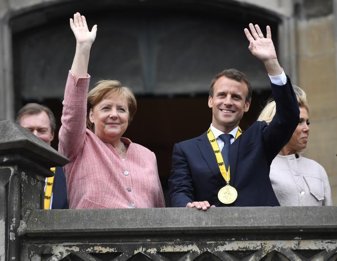 "Prošlo je vreme kad smo jednostavno mogli da računamo da SAD da nas zaštiti", rekla je kancelarka Merkel u Ahenu u prisustvu francuskog predsednika Emanuela Makrona i dodala da "Evropa treba sama da uzme sudbinu u svoje ruke".