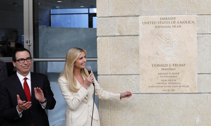 Njegova ćerka i visoka savetnica u Beloj kući Ivanka Tramp zajedno sa ministrom finansija SAD Stivenom Mnučinom otkrila je ploču na zidu zgrade koja će služiti kao privremeni dom američke ambasade u Jerusalimu.