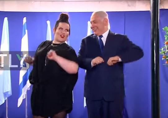 JERUSALIM - Izraelski premijer Benjamin Netanijahu nije mogao da odoli, a da ne zaigra "kokošji ples" sa pevačicom Netom Barzilai, koja ga je posetila u zvaničnoj rezidenciji pošto je pobedila na Evroviziji.