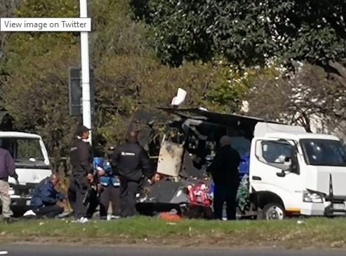 Banda od 10 razbojnika napala je dva vozila za trasport novca u predgrađu Johanesburga i eksplozivom ih totalno demolirala.
