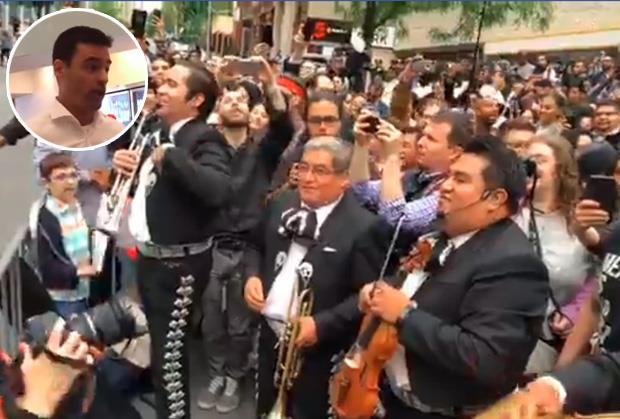 Poznatom američkom advokatu Aronu M. Šlošbergu, koji je pre neki dan u jednom restoranu na Menhetnu izvređao društvo koje je razgovaralo na španskom, marijači bend je pod prozorom priredio pravo latino slavlje.