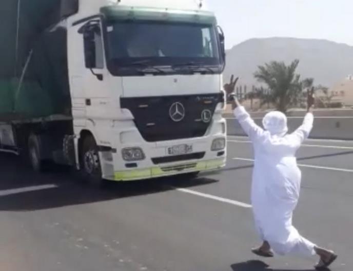 Ovaj mladić iz Saudijske Arabije uhapšen je pre takvog kraja, a njegov izazov sastojao se u tome da iskače pred kamione koji su u punoj brzini i u poslednjem trenutku pobegne.