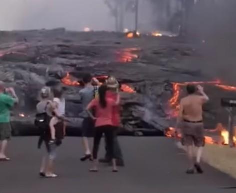 Na snimcima se može videti kako meštani gledaju kako se lava polako bliži njihovim kućama, a pojedinci su čak iskoristili priliku i da slikaju te prizore.