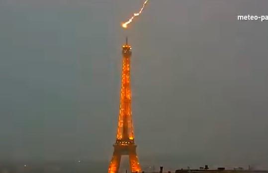 Kamera pariske meteorološke web stranice uhvatila je trenutak u kojem je munja pre dva dana pogodila Ajfelov toranj, a na fotografiji se vidi munja koja udara u vrh poznate građevine.