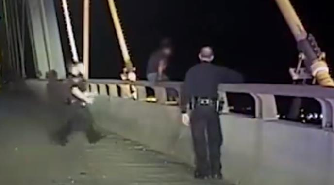 ŽENA JE SEDELA NA IVICI MOSTA I SAMO ŠTO SE NIJE BACILA: Pogledajte kako su joj se policajci prikrali i spasli joj život (VIDEO)