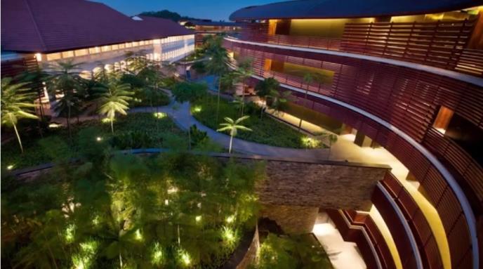 Nekadašnje zgrade vojnih baraka izgrađene u kolonijalnom stilu su obnovljene i pretvorene u hotelski foaje, a spoljašnjost čine nove moderne strukture.