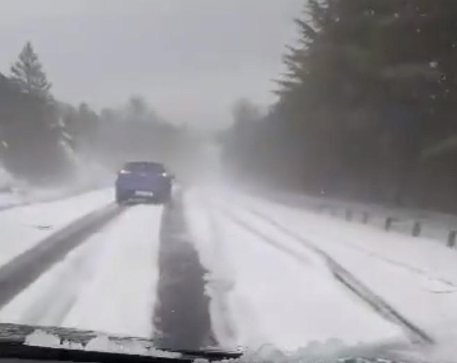 Grad veličine oraha za samo nekoliko minuta stvorio je sloj leda na putu u visini od sedam centimetara.